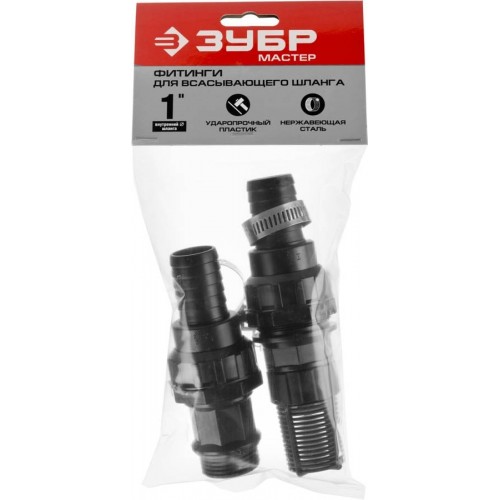 Набор для всасывающих шлангов ЗУБР 40316, применяется для сборки комплекта для откачки воды. Набор арматуры позволяет собрать комплект для откачки воды из различных водоёмов. Подходит к всасывающим шлангам с внутренним диаметром 1", подключается к насосу с помощью резьбового соединения 1". Состоит из обратного клапана с фильтром для воды, адаптера для подключению к насосу и двух хомутов. Фитинги из ударопрочного пластика и хомуты из нержавеющей стали обеспечивают высокую надёжность соединений и гарантирует продолжительный срок службы изделия. Фильтр обеспечивает первичную очистку воды от посторонних примесей и защищает систему водоснабжения от засорений. Обратный клапан предотвращает утечку воды при выключенном насосе.