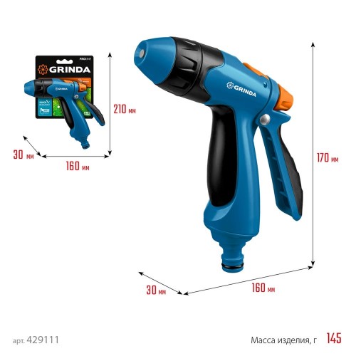GRINDA B-R, плавная регулировка напора, курок сзади, двухкомпонентный, поливочный пистолет, PROLine (429111)