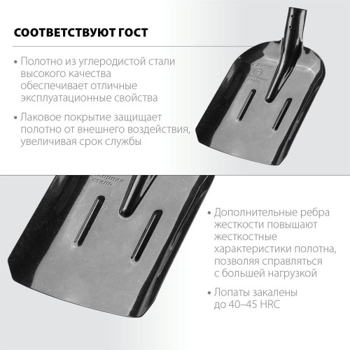 Совковая лопата оптимальна в работе с сыпучими материалами, а также для приготовления различных смесей