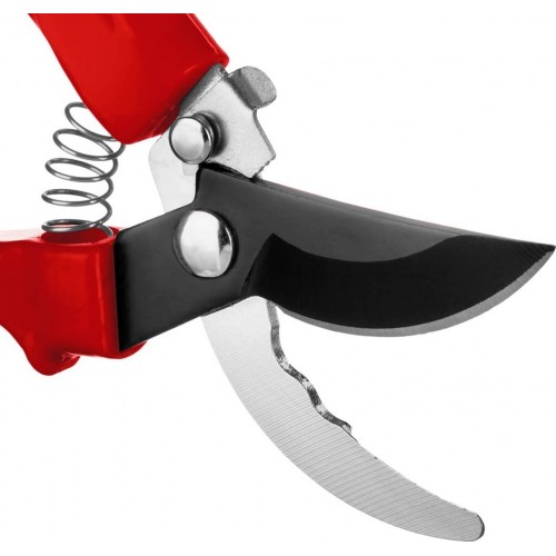 - Комбинированное (заточенное и зазубренное) нижнее лезвие обеспечивает удобный захват веток и более точный рез.