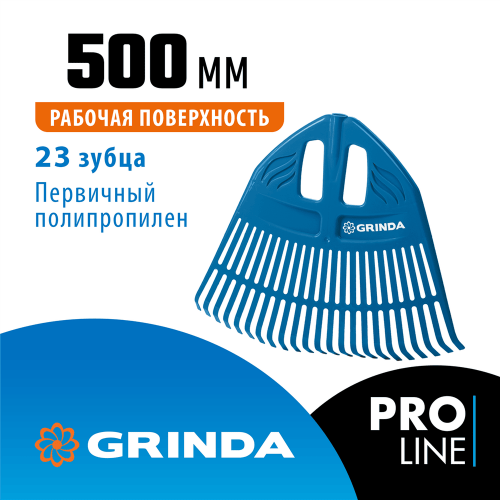 GRINDA PP-23 23 зубца, 500х50х420 мм, без черенка, пластиковые, Веерные грабли, PROLine (421813)