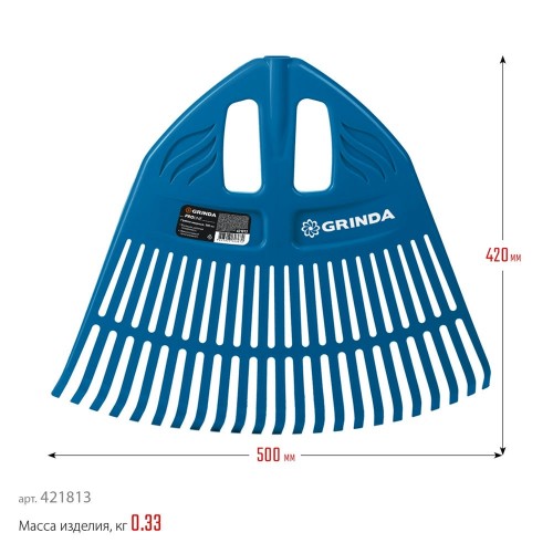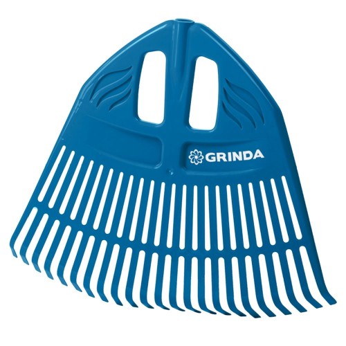 Веерные грабли пластиковые без черенка GRINDA 421813, применяются для уборки территории от скошенной травы или опавших листьев и другого мусора при выполнении садово-огородных работ. Большая рабочая поверхность из прочного полипропилена. Подходит для черенка диаметром: 25 мм.