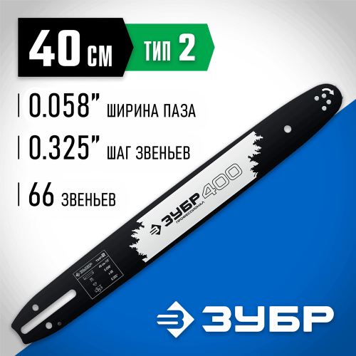 Шина для бензопил ЗУБР 70202-40, предназначена установки соответствующих цепей при использовании с цепными пилами. Подходит для ПБЦ-450 40П, ПБЦ-490 45ДП, ПБЦ-560 45ДП, ЗЦПБ-450, ЗЦПБ-490-450. Универсальная шина - для установки цепей с различными характеристиками. Сталь высокого качества и точность размеров гарантирует долгий срок службы как самой шины, так и цепи. Специальное покрытие предохраняет от царапин и коррозии. Подшипник ведомой звездочки обеспечивает плавное движение цепи весь срок службы шины.