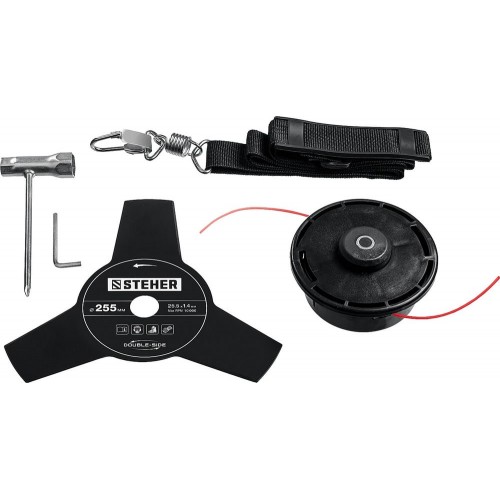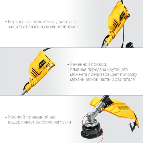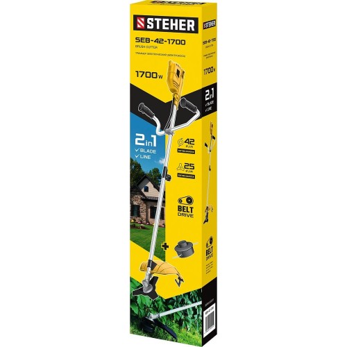 Электрический триммер (сетевая коса) STEHER SEB-42-1700, предназначен для кошения растительности на садовых участках и газонах. Универсальный инструмент на участке. сетевая коса способна заменить обычную газонокосилку и триммер, так как оснащается катушкой с леской (для мягкой растительности) и ножом (для грубой растительности). Большая мощность двигателя 1700 Вт позволяет косить довольно густую и грубую растительность, а небольшие размеры - добраться до самых труднодоступных мест. Идеальная развесовка (благодаря верхнему расположению двигателя) и плечевой ремень увеличивают маневренность и облегчают эксплуатацию.