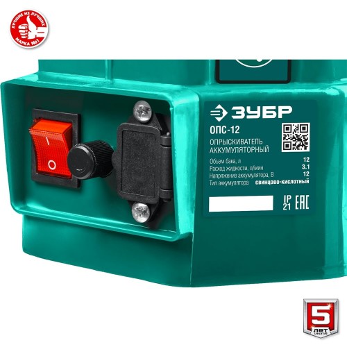 ЗУБР 12 В 380х210х440 мм, 12 л бак, опрыскиватель аккумуляторный ОПС-12 Мастер