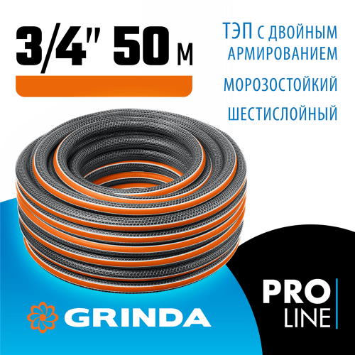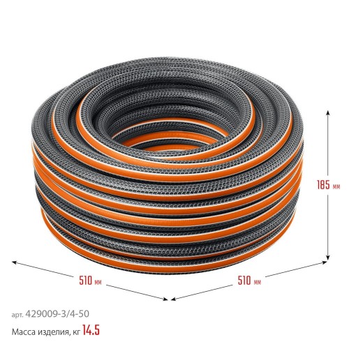 Шланг для полива армированный GRINDA 429009-3/4-50, используется на садово-огородных участках при проведении поливочных или иных работ, требующих водоснабжения. Легкий, прочный и эластичный шестислойный шланг с двойным армированием.