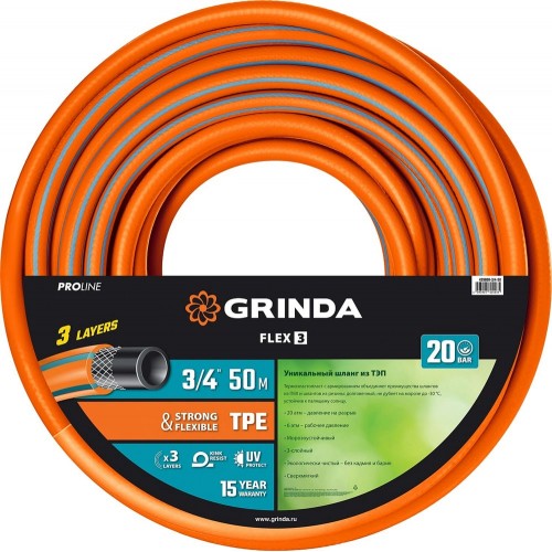GRINDA 3/4"х50 м, 20 атм., 3-х слойный, армированный, шланг поливочный PROLine 429008-3/4-50