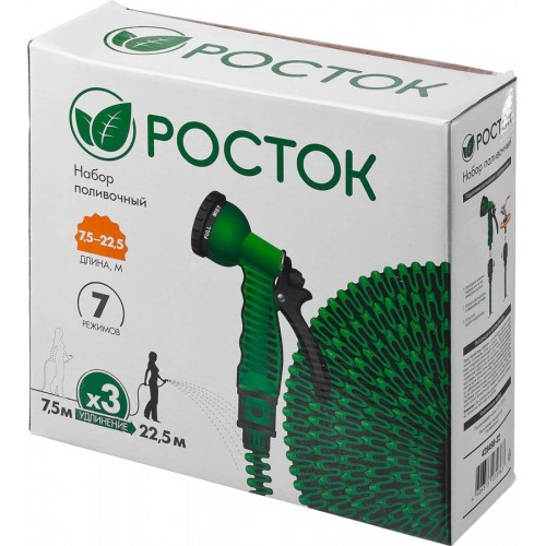 РОСТОК Р-22, длина 7.5 - 22.5 м, пистолет поливочный, коннекторы, удлиняющийся шланг (428498-22)