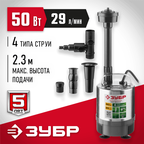 Насос фонтанный ЗУБР ЗНФЧ-29-2.3-С, предназначен для украшения водоемов фонтаном с различными типами струй, а также водопадом. Также может использоваться для перекачки чистой воды из водоемов с учетом технических характеристик модели. Простое и надежное устройство, позволяющее превратить обычный участок в замечательный сад. Корпус из нержавеющей стали гарантирует долговечность. Четыре формы фонтанной струи - гейзер, колокольчик, большой и малый каскад. Плавная регулировка струи "колокольчик" и легкая смена типа фонтана. Для чистой воды. Возможность организовать водопад. Удлинительная трубка в комплекте. Крепление к плиточному или пластиковому дну водоема. Губчатый фильтр для защиты насоса от попадания частиц грязи.