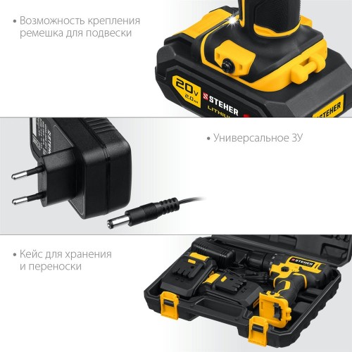 Новый недорогой шуруповерт Steher - помощник в сверлении и заворачивании. Индивидуальный дизайн, удобная эргономика, высокие скорость и крутящий момент обеспечивают комфортную и производительную работу. ″Мягкая″ муфта с минимальным крутящим моментом 0.2 Нм позволяет работать с компьютерными винтиками или мебельной отделкой