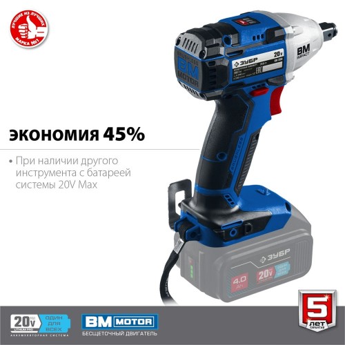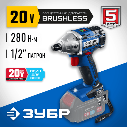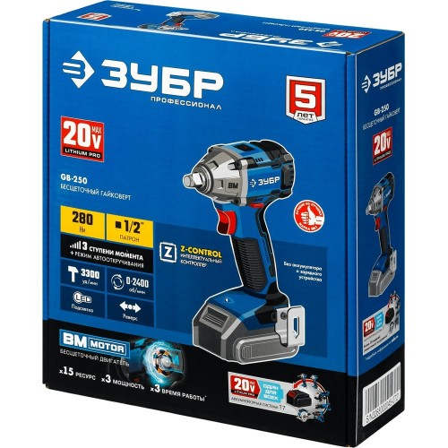 ЗУБР 20В, без АКБ, в коробке, бесщеточный гайковерт GB-250 Профессионал