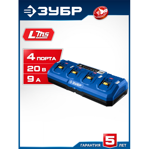 Зарядное устройство ЗУБР TC-20-4 предназначено для зарядки батарей аккумуляторного инструмента. Четыре порта для одновременной зарядки батарей ускоряют процесс заряда. Сверхбыстрая зарядка током 9 А на каждый порт позволяет работать практически без перерывов.