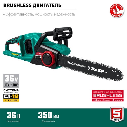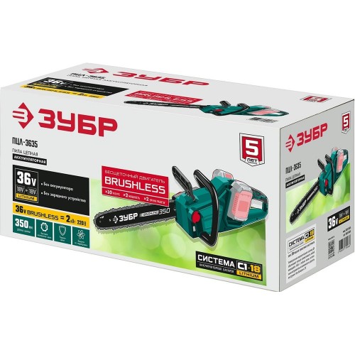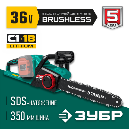 ЗУБР С1-18, 36 В, 35 см шина, без АКБ, бесщеточная цепная пила (ПЦЛ-3635)