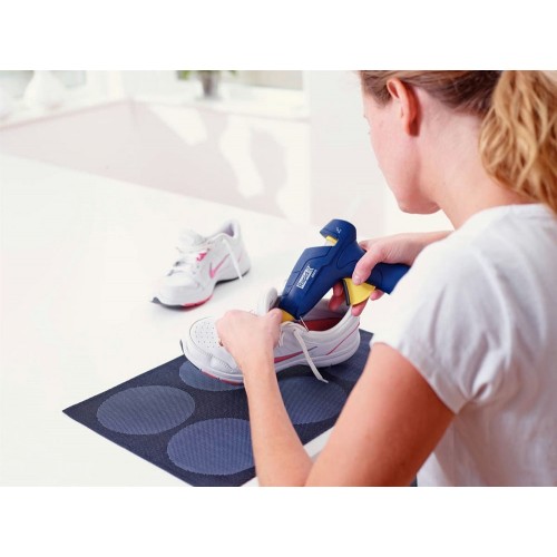Термоклеящий пистолет RAPID 5000442, предназначен для быстрого и легкого выполнения работ по декорированию и ремонту по всему дому. Поставляется с регулируемой подставкой для более эффективного нанесения клея, среди других особенностей - мягкий курок для лучшего контроля и удобства, а также силиконовую защиту насадки.