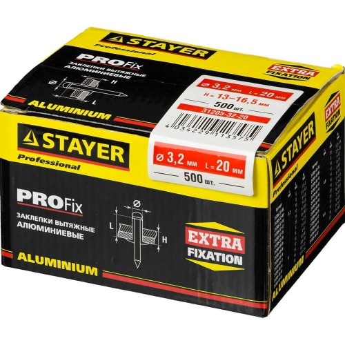 Широкий размерный ряд заклепок STAYER позволяет скреплять листовые материалы разной толщины. Использование вытяжных заклепок при монтаже существенно сокращает время работы. Для установки заклепок требуется заклепочник и доступ с одной стороны скрепляемых материалов.