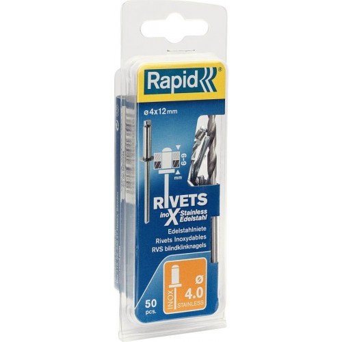 Заклепки из нержавеющей стали RAPID 5000394, предназначены для получения неразъемного соединения из двух или более слоев материалов с помощью заклепочника.