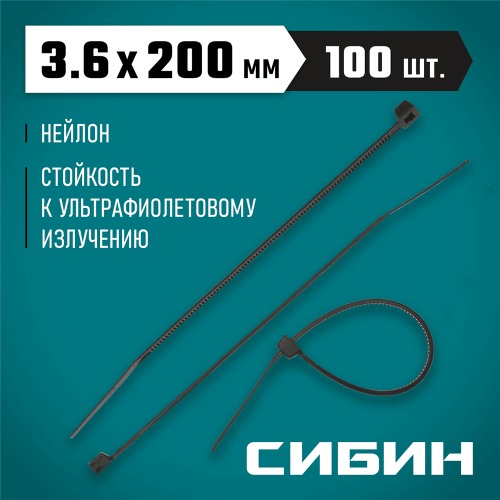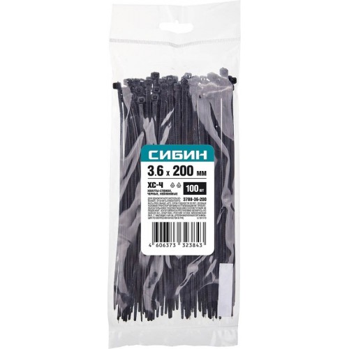СИБИН 200х3.6 мм, 100 шт, хомуты нейлоновые черные 3788-36-200