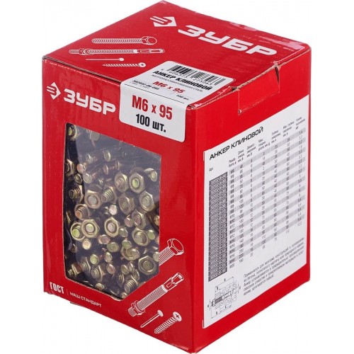 ЗУБР 100 шт., М6х95 мм, желтопассивированный, анкер клиновой 302032-06-095