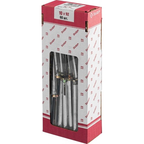 Анкеры рамные ЗУБР 302232-10-092, предназначены для крепления оконных рам и дверных коробок к поверхностям из бетона, полнотелого кирпича или природного камня. Анкеры изготовлены из высококачественной стали, что придает соединению повышенную прочность. Анкер устанавливается в предварительно просверленное отверстие, расклинивание происходит при вкручивании винта. Анкер расклинивается не только в основании, но и около головки винта, плотно прижимая прикрепляемый материал к основанию. Ребра на гильзе предотвращают проворачивание анкера в отверстии. Желтопассивированное покрытие обеспечивает устойчивость изделия к воздействию влаги, что позволяет использовать анкеры при выполнении наружных работ.