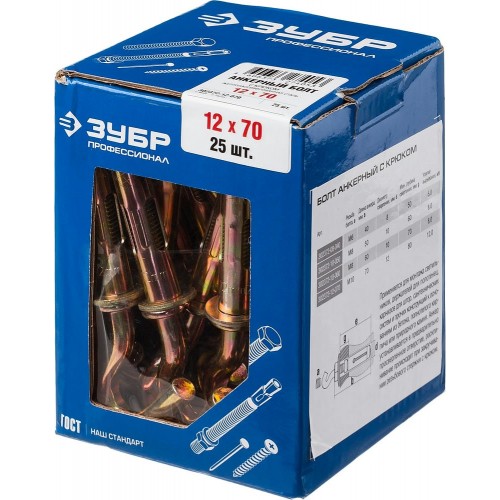 Анкерный болт ЗУБР 302372-12-070, предназначен для крепления различных материалов к бетону или природному камню. Крепление осуществляется при помощи болта.