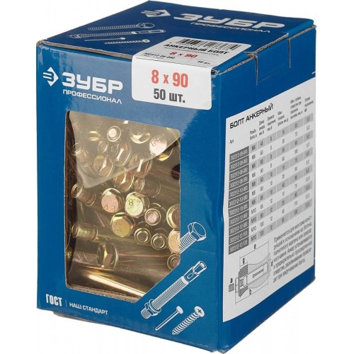 Анкерный болт ЗУБР 302312-08-090, предназначен для крепления различных материалов к бетону или природному камню. Крепление осуществляется при помощи болта.