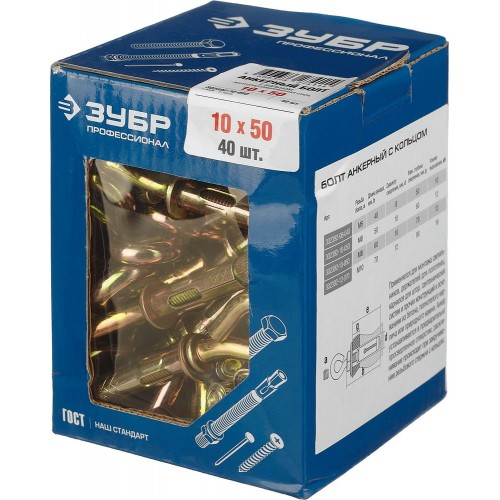 Анкерный болт ЗУБР 302392-10-050, предназначен для крепления различных материалов к бетону или природному камню. Крепление осуществляется при помощи болта.