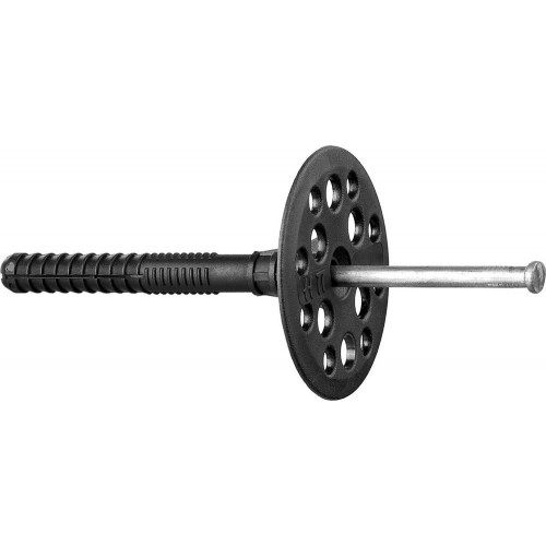 Дюбели для теплоизоляции изготовлены из высококачественных материалов. Большой диаметр головки дюбеля позволяет крепить как твердые, так и мягкие теплоизоляционные материалы (минеральную вату, стекловату, полистирол, пенопласт и др.), препятствуя их разрыву или повреждению в месте крепления.