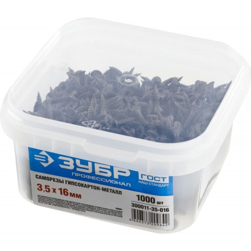 Саморезы гипсокартон-металл ЗУБР 300011-35-016, предназначены для крепления гипсокартона к металлическому профилю и твердым породам дерева. Фосфатированное покрытие обеспечивает защиту от коррозии. Саморезы для гипсокартона изготовлены из стального прутка с высоким содержанием углерода. Контроль за геометрией самореза начинается с калибровки прутка и заканчивается тщательной проверкой размеров готового изделия. Нормативная твердость стали достигается термической обработкой. Поверхностная твердость 550-720HV, твердость в сердцевине 290-450HV. Широко применяются при выполнении бытового ремонта, сборке и установке различных конструкций. Саморезы легко вкручиваются обычным шуруповертом или отверткой с крестообразным шлицем PH2 (DIN). Предварительное сверление в скрепляемых материалах не требуется.