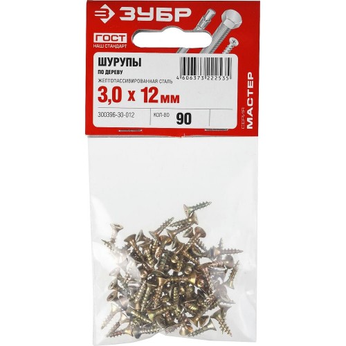 ЗУБР 12 х 3.0 мм, 90 шт., желтый цинк, СУ-Ж саморезы универсальные по дереву 300396-30-012 Мастер