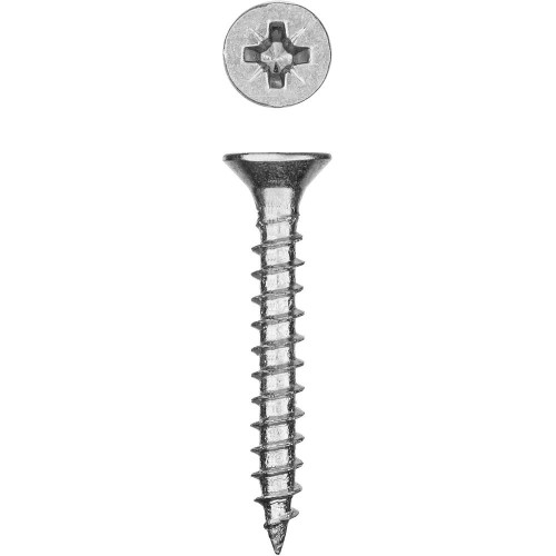 Саморезы универсальные изготовлены из стального прутка с высоким содержанием углерода. Контроль за геометрией самореза начинается с калибровки прутка и заканчивается тщательной проверкой размеров готового изделия. Нормативная твердость стали достигается термической обработкой. Поверхностная твердость 550-800HV, твердость в сердцевине мин. 320HV. Саморезы легко вкручиваются обычным шуруповертом или отверткой. Предварительное сверление в скрепляемых материалах не требуется.