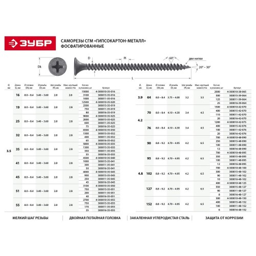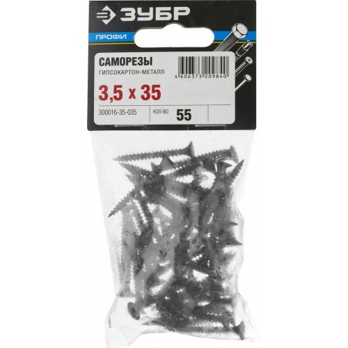 ЗУБР 35 х 3.5 мм, 55 шт., СГМ саморезы гипсокартон-металл 300016-35-035 Профессионал