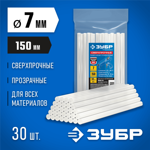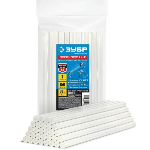 Клеевые стержни ЗУБР 06855-30, предназначены для склеивания различных материалов (стекло, ткань, ПВХ-пластик, электроаппаратура, металл). Используются в местах крепления материалов, где применение гвоздей, скоб и другого крепежа невозможно или нежелательно. Рабочая температура: 150℃~170℃.