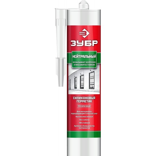 Герметик нейтральный, прозрачный, силиконовый ЗУБР 41237-2, предназначен для наружных и внутренних работ при строительстве, ремонте и в быту для заполнения и герметизации швов, стыков, щелей большинства строительных материалов (бетон, цемент, стекло, керамика, металл, пластик, ПВХ, дерево, резина). Нейтральный профессиональный силиконовый герметик широкого применения. Отличная адгезия к большинству строительных материалов. Применим с материалами корродирующими в кислотной среде (металлы, цемент, бетон, природный камень). Не имеет запаха. Устойчив к длительному воздействию воды, к воздействию внешней среды, УФ-излучению. Сохраняет заявленные характеристики в широком диапозоне температур. Не пригоден для окрашивания. Не использовать в местах контакта с питьевой водой.