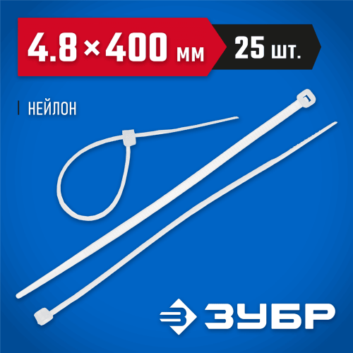ЗУБР 400х4.8 мм, 25 шт., хомуты нейлоновые белые 4-309017-48-400 Профессионал