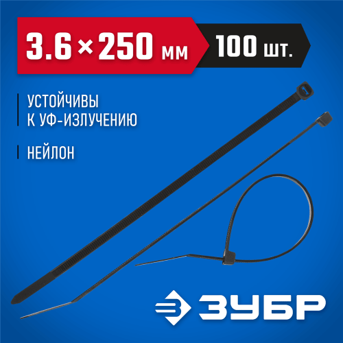 Пластиковые хомуты ЗУБР 309030-36-250, предназначены для быстрой стяжки кабелей электропроводки в пучок и их крепления к различным элементам конструкции при проведении электромонтажных работ. Пластиковые хомуты (стяжки) имеют очень широкий спектр применения при проведении строительных и ремонтных работ. Изготовлены из высококачественного прочного и эластичного нейлона. Благодаря устойчивости к воздействию ультрафиолетового излучения черные хомуты можно использовать вне помещений. Отличаются повышенной морозоустойчивостью и термостойкостью. Диапазон рабочих температур от -35°С до +80°С допускает использование хомутов в самых разнообразных условиях. Обладают хорошими диэлектрическими свойствами.
