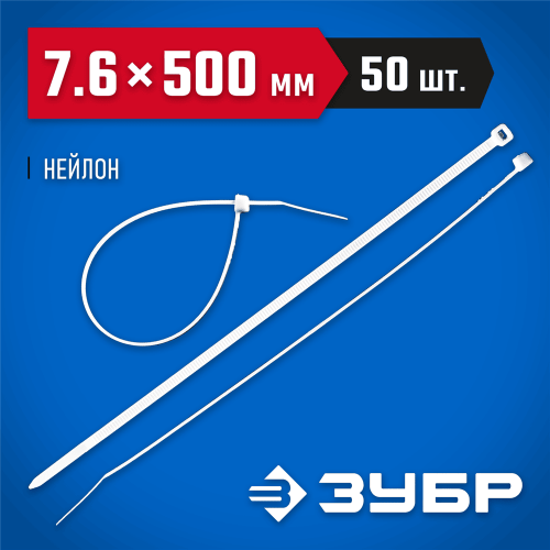 ЗУБР 500х7.6 мм, 50 шт., хомуты нейлоновые белые 309010-76-500