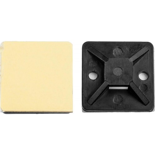 Для крепления кабельных стяжек к различным поверхностям при помощи самоклеящегося основания. Для обеспечения большей несущей способности или при использовании площадки снаружи зданий необходимо воспользоваться саморезом.
