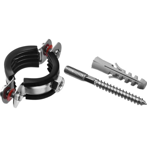 Стальные трубные хомуты способны выдерживать большие нагрузки и обеспечивают надежность крепления труб различного назначения к любым основаниям. Труба прочно фиксируется внутри хомута с помощью метрических винтов. Уплотнитель из высококачественной резины обеспечивает идеальную шумоизоляцию. Ширина ленты хомута составляет 20 мм.