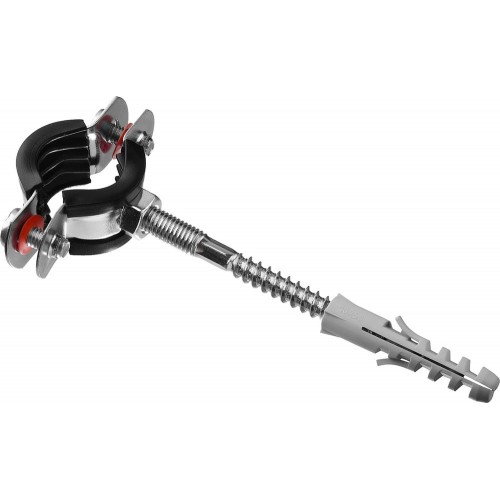 • Комплектность набора позволяет крепить хомут как с помощью гайки, так и с использованием шпильки и дюбеля