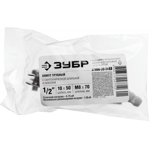 ЗУБР 1 шт., 1/2", оцинкованный, в комплекте с сантехнической шпилькой и дюбелем, хомут трубный с гайкой 37866-20-24_z01 Мастер