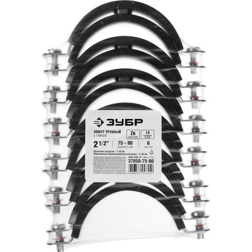 Хомут трубный с гайкой ЗУБР 37850-75-80, предназначен для крепления труб различного назначения к любым основаниям. Труба прочно фиксируется внутри хомута с помощью метрических винтов. Уплотнитель из высококачественной резины обеспечивает идеальную шумоизоляцию.