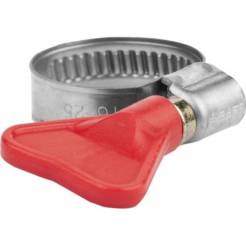 Хомут металлический ЗУБР 37835-35-50-100, предназначен для крепления шлангов к патрубкам, а также широко применяются в автомобилестроении, машиностроении, при выполнении авторемонтных, садовых, сантехнических и прочих работ. Хомут червячный состоит из накатной ленты и замка с пластиковым ключом. Пластиковый ключ обеспечивает возможность установки хомута без помощи инструментов. Накатная лента имеет гладкую внутреннюю поверхность, что обеспечивает высокую герметичность соединения без повреждения поверхности скрепляемых материалов. Изготовленный из нержавеющей стали хомут обладает повышенной прочностью и коррозионостойкостью. Червячный винт снабжен пластиковым ключом, что позволяет установить хомут без помощи инструментов. Хомут предназначен для многократного использования.