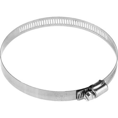 Хомут металлический ЗУБР 37815-105-127-2, предназначен для крепления шлангов к патрубкам, а также широко применяются в автомобилестроении, машиностроении, при выполнении авторемонтных, садовых, сантехнических и прочих работ. Хомут червячный состоит из просечной ленты и замка с винтом. Для монтажа хомута необходима только отвертка. Изготовленный из нержавеющей стали хомут обладает повышенной прочностью и коррозионостойкостью. Червячный хомут состоит из штампованной нержавеющей ленты и винта с червячной резьбой. По всей длине ленты имеются просечки, расположенные на одинаковом расстоянии друг от друга. При вращении винта лента сжимается, благодаря чему создается надежное и герметичное соединение шлангов, различных труб, и т.д. Червячный винт снабжен шестигранной головкой и шлицем SL, что позволяет использовать при монтаже гаечный ключ или шлицевую отвертку. Хомут предназначен для многократного использования.