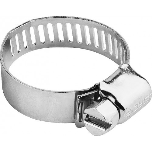 Стальной червячный хомут состоит из штампованной ленты и винта с червячной резьбой. По всей длине ленты имеются просечки, расположенные на одинаковом расстоянии друг от друга. При вращении винта лента сжимается, благодаря чему создается надежное и герметичное соединение шлангов, различных труб, и т.д. Червячный винт снабжен шестигранной головкой под ключ 6 мм и шлицем SL, что позволяет использовать при монтаже гаечный ключ или шлицевую отвертку.