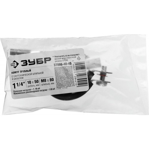 ЗУБР 1 шт., 1 1/4", оцинкованный, в комплекте с сантехнической шпилькой и дюбелем, хомут трубный с гайкой 37866-40-45 Мастер