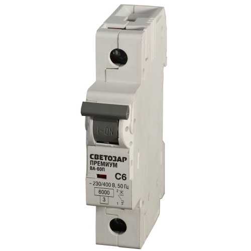 Автоматический 1-полюсный выключатель СВЕТОЗАР ″ПРЕМИУМ″ ″C″, 6 кА, 230/400 В выполняет функцию защиты установок от перегрузок и коротких замыканий. Он применяются в промышленных зданиях. Главная особенность при выборе выключателя: он должен соответствовать напряжению и расчётному току цепи. Прибор выключает сеть при 5-10 кратном превышении номинальной силы тока. Выключатель превосходит параметры ГОСТ (от -5°С до +40°С), поскольку устойчив к температурам от -40°С до +45°С.