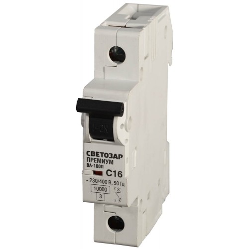 Автоматический выключатель СВЕТОЗАР SV-49031-06-C, 1-полюсный, предназначен для защиты электрических сетей от высоких токов короткого замыкания. Он подходит для жилых, административных помещений. Данный выключатель по показателю температурного режима превосходит параметры ГОСТ (от -5°С до +40°С), так как он может использоваться при - 40°С до +45°С. Надежная защита электрооборудования от неполадок в электрической сети. Мгновенное размыкание электрической цепи при 5-10-кратном превышении номинальной силы тока. Высококачественный термостойкий пластик, исключающий возможность возгорания в щитке. Насечки на прижимных пластинах контактов обеспечивают надежный зажим проводов, исключая нагрев и искрение.