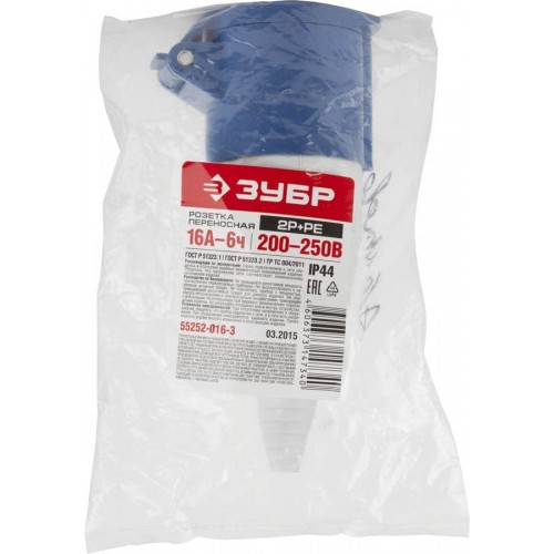 ЗУБР 250 В, 16A, розетка переносная 55252-016-3