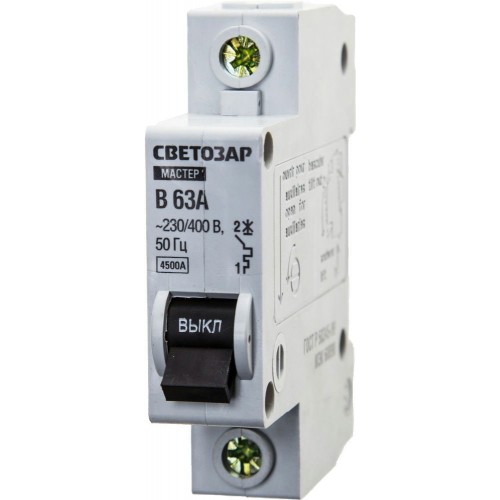 Автоматический выключатель СВЕТОЗАР 49050-63-B, предназначен для защиты от перегрузок в электрических сетях. Корпус выполнен из термостойкого пластика. Устанавливается в жилых или офисных помещениях. Тип расцепления - В, он выключается при 3-5 кратном превышении напряжения в сети. Специальные насечки на прижимных пластинах обеспечивают надежный зажим проводов. Применяются для защиты электрооборудования от перегрузок и короткого замыкания в однофазных электрических цепях напряжением 230/400 В.