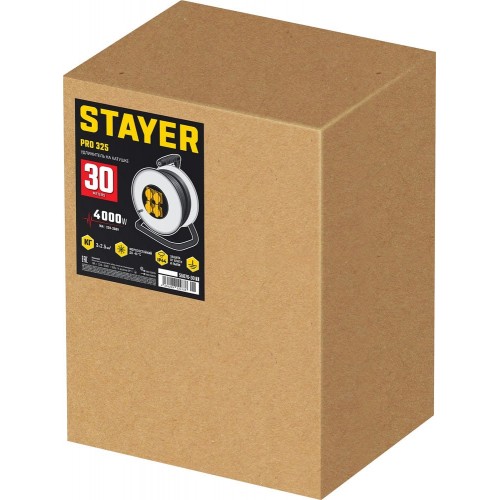 STAYER PRO 325 КГ 3х2.5 30м 4000Вт IP44, Силовой удлинитель на стальной катушке (55076-30_z01)